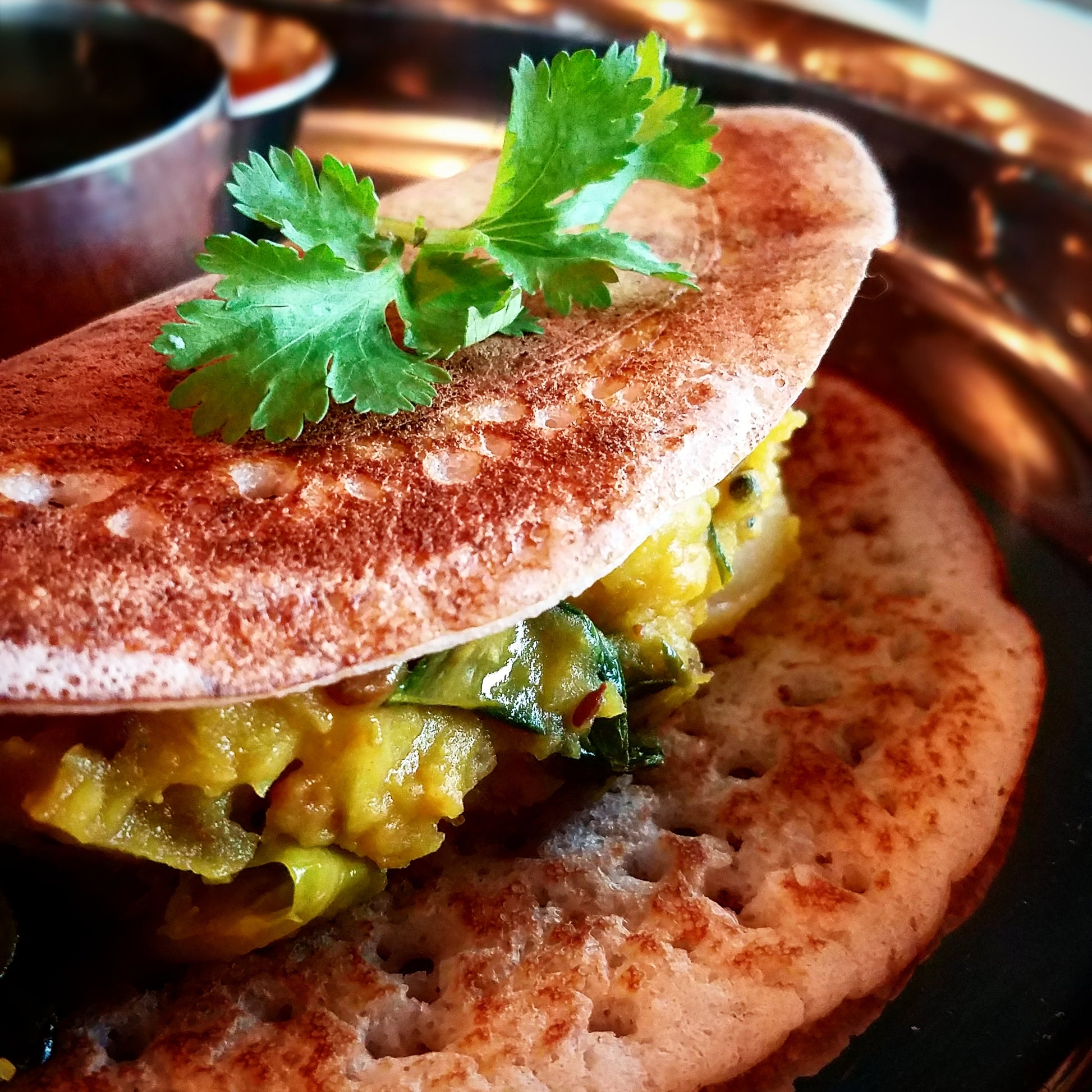 Masala Dosa-Crisp Lentil Crepe with Potatoes and Sambar